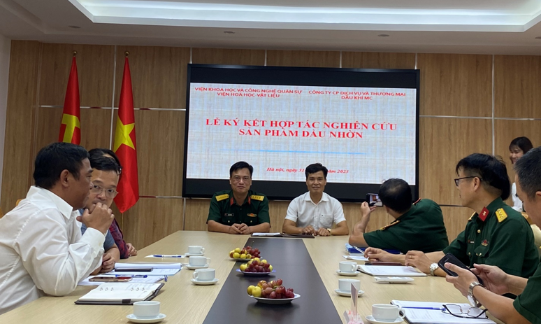 Lễ ký kết hợp tác nghiên cứu và phát triển các sản phẩm dầu mỡ nhờn giữa công ty cổ phần Dịch vụ và Thương mại Dầu khí MC và Viện Hóa học Vật liệu - Viện Khoa học và Công nghệ Quân sự.